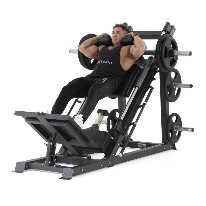 La nuovissima combinazione di macchine Combo Leg Press e Hack Squat Diamond rappresenta un’innovazione assoluta all’interno della prestigiosa Serie 300 Professional di Diamond.