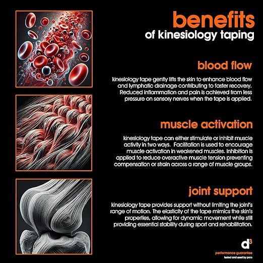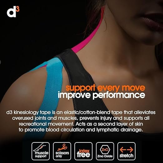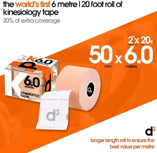 Con una larghezza di 50 mm e una lunghezza di 6 metri, il d3 K6.0 offre una copertura ottimale per diverse aree del corpo – tra cui caviglie, ginocchia, spalle, gomiti e gambe – garantendo un supporto costante e duraturo. È disponibile in diverse colorazioni per adattarsi al tuo stile e alle tue preferenze.