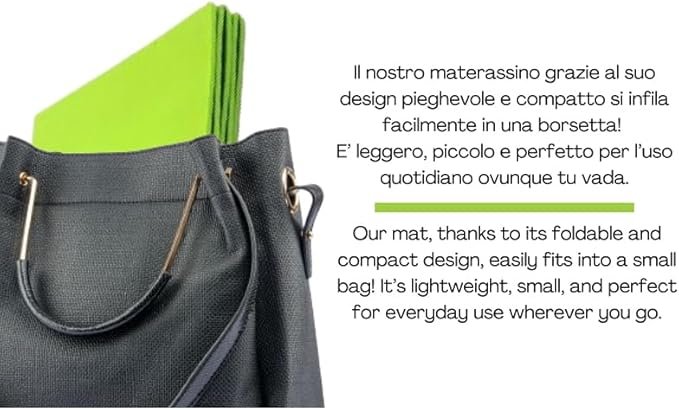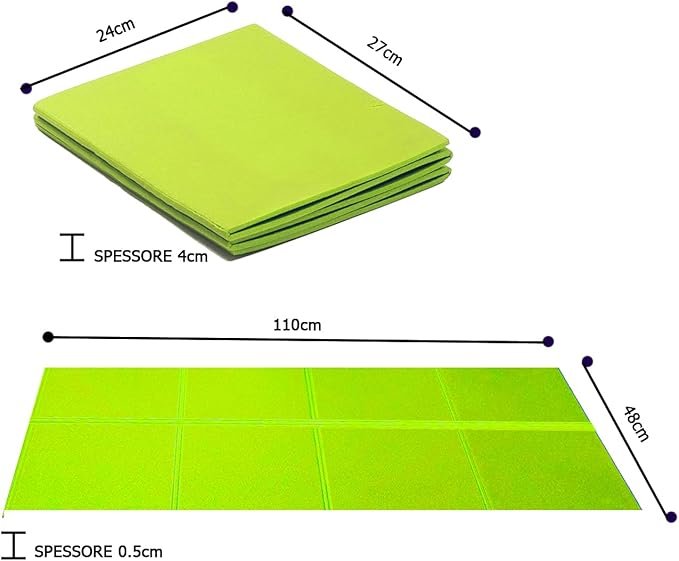Una volta terminato l’allenamento, il tappetino può essere ripiegato rapidamente grazie alla sua struttura suddivisa in quattro pratiche sezioni, consentendo di riporlo in modo compatto senza ingombro. È l’accessorio indispensabile non solo per le attività di fitness e benessere, ma anche per il tempo libero, ad esempio come base per campeggi, picnic o come letto extra per ogni occasione.