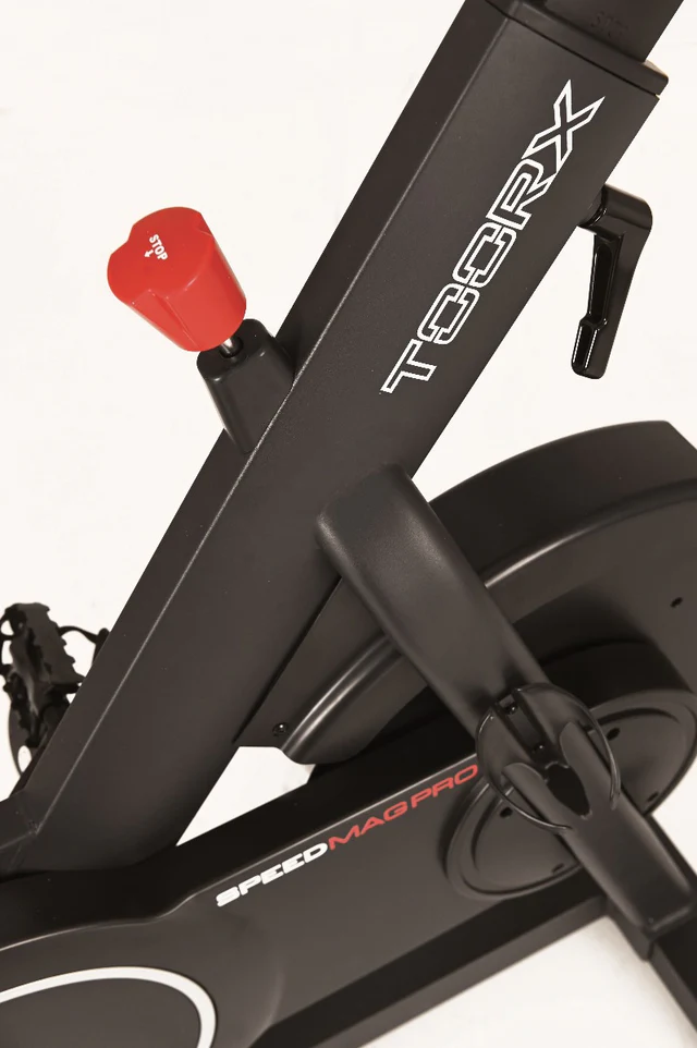 La Toorx SPINBYKE Speed Mag PRO rappresenta il nuovo modello della gamma Toorx. Il suo volano bilanciato pesa 20 kg, garantendo un movimento estremamente silenzioso e fluido. Rispetto alla versione Speed Mag, questa versione PRO integra un sistema di frenaggio magnetico motorizzato (elettromagnetico) con 24 livelli regolabili tramite il display. È inoltre dotata di un freno di emergenza per bloccare immediatamente il volano. Il display LCD retroilluminato blu include un supporto per Smartphone e Tablet, consentendo il monitoraggio di tempo, distanza, velocità, calorie bruciate, RPM, livello di resistenza, Watt e pulsazioni, quest’ultime rilevate tramite la fascia cardio Toorx inclusa. La console possiede numerosi programmi preimpostati: 10 programmi standard, 4 programmi HRC, 1 programma Watt e 1 programma User. La funzione App Ready 3.0 con sistema Bluetooth integrato permette la compatibilità con le app Zwift e Kinomapp Fitness (abbonamenti non inclusi). Il peso massimo consentito per l’utente è di 130 kg.